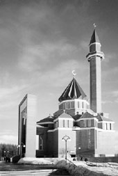 Мечеть (араб. масджид — место поклонения) — молитвенный дом мусульман. Первая мечеть, по преданию, была построена около 625 г. в селении Куба близ Медины — месте захоронения пророка Мухаммада. Современный облик мечети оформился к началу IX в. В мечети мусульмане собираются для общей молитвы, слушания проповеди и обсуждения общественных дел. Классическая мечеть представляет собой крытое здание с куполом или сводами, опирающимися на колонны. По углам мечети с внешней стороны воздвигаются минареты, от одного до четырёх и более, с которых муэдзин — служитель мечети — призывает верующих к молитве. Внутри мечети — зал с колоннадой и балконом. В стене зала, обращённой к священному городу мусульман Мекке, находится михраб — ниша, показывающая направление к Мекке. В михрабе обычно хранятся Коран и другие религиозные мусульманские книги. Справа от ниши находится минбар — кафедра, с которой произносятся проповеди. Мечети обычно украшают резьбой по камню или дереву, узорной кирпичной или каменной кладкой, поливной керамикой, инкрустацией, мозаикой, орнаментной росписью. Большинство мечетей имеют открытый или снабжённый навесом двор с колодцами, фонтаном или бассейнами для совершения ритуального омовения. Священный полумесяц на куполе мечети — это исламский символ, т.к. мусульманское летосчисление началось с того момента, когда на небосводе луна находилась в виде полумесяца.