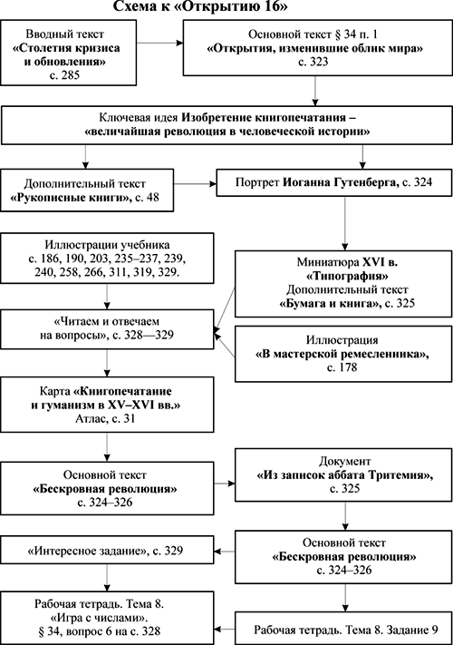 Теперь попробуем схематично представить траекторию использования учебника на данном уроке (Схема 2. К открытию 16).